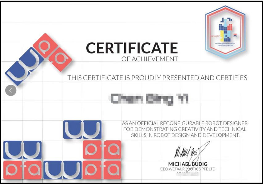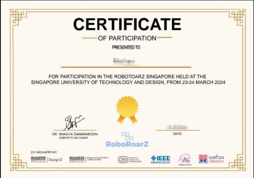 完成本项目的学员,将获得由南洋理工大学和新加坡科技设计大学主办部门颁发的结业证书,在国际竟赛中获得优胜的小组成员还将额外获得新加坡科技设计大学联合多个协会共同颁发的优胜证明